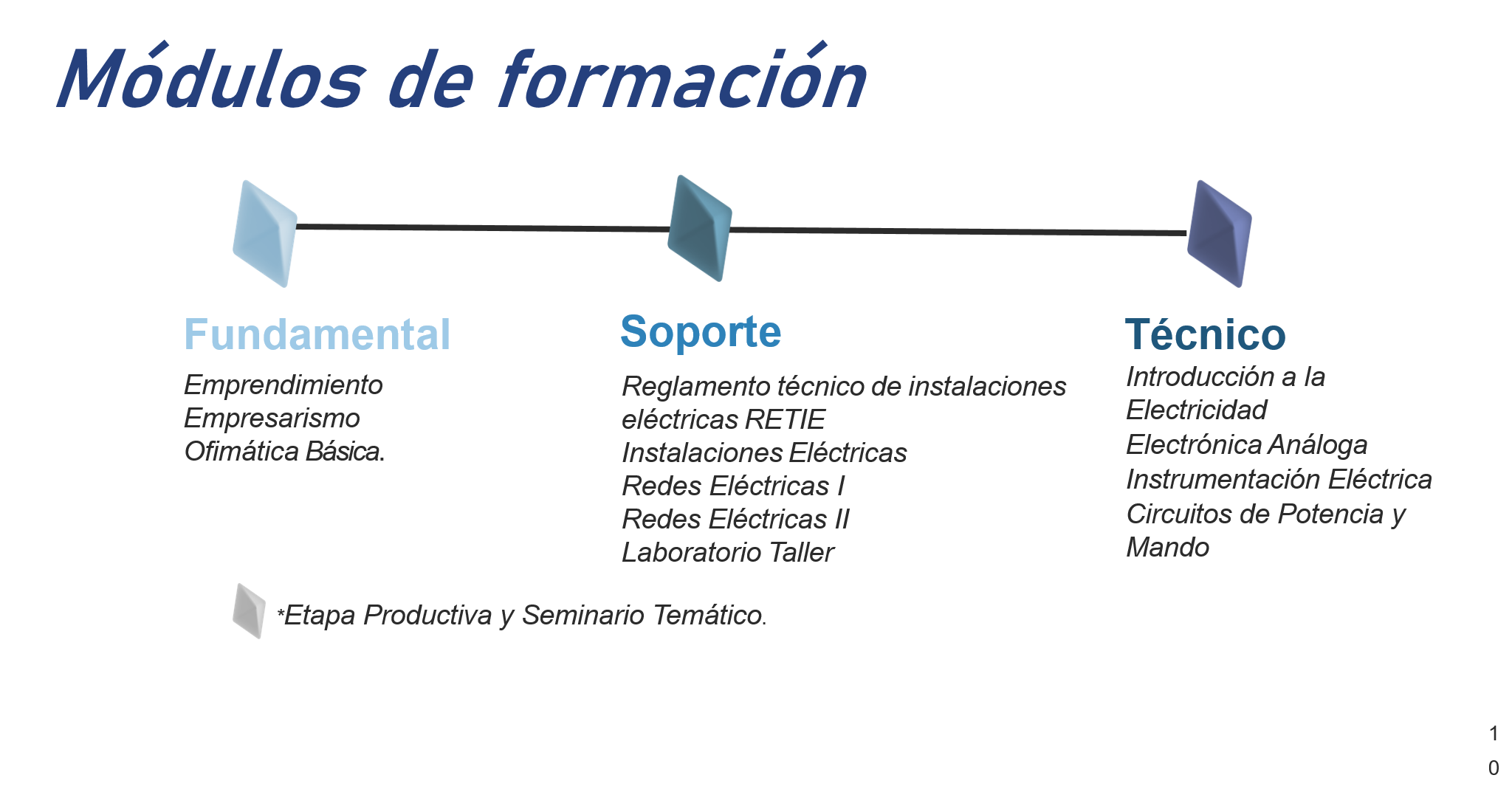 Formar técnicos laborales en electricidad competentes en requeridas funciones para un buen desempeño en las áreas de la electricidad domestica e industrial, es decir, en la instalación, puesta en marcha y mantención de proyectos asociados a esta área.